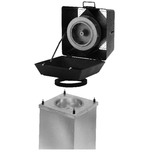 TGK er monteret med 4 gevindstykker til fastgørelse af DTV-tagventilatoren. Der medleveres vibrationsdæmpende materialer, således at DTV´ens vibrationer ikke overføres til kanalsystemet.